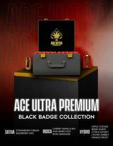 The Ace Ultra Premium, the Black Badge collection. This collection is a masterful work of precision and a testament to its prestige. The iconic Ace Mini 2G device returns, reimagined in our most distinguished release yet. The device features NFC authentication and a new tamper-proof seal, both curated with our top 10 signature flavours.
